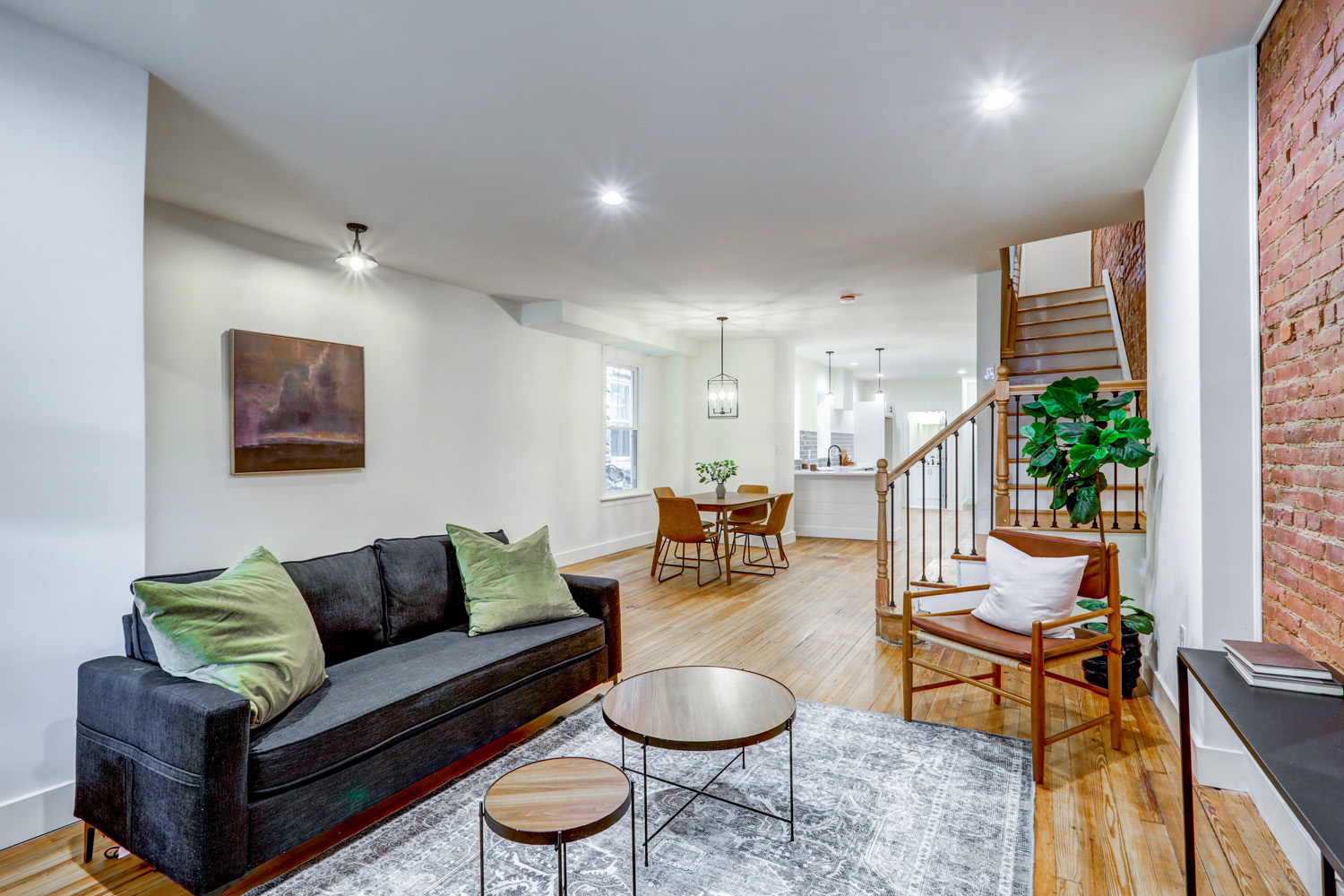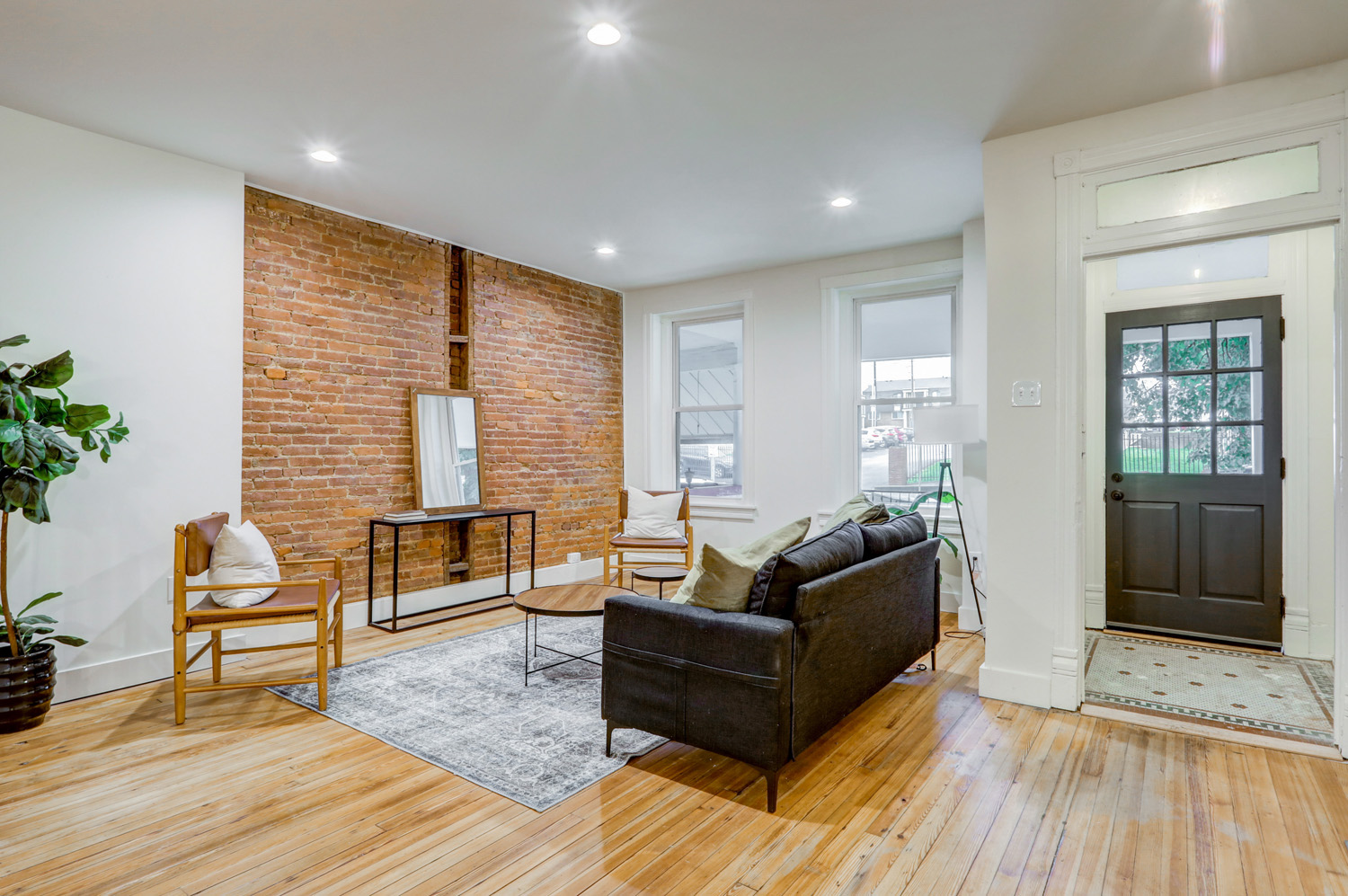 Welcome to 131 S Marshall Street - this spacious, beautiful, brick semi-detached home in downtown Lancaster City has been fully remodeled and updated - all while preserving its classic charm! The four bedroom, 2 full/1 half bath home has been given completely new life with lovely finishes, paint, and fixtures throughout, in addition to countless structural upgrades. Before entering the home you'll notice the new welcoming front porch to enjoy the fall. Once inside, you're greeted with a bright and open concept space - lovely tile vestibule, glowing, original hardwoods, and lots of windows letting in light. Past the living area with exposed brick is a charming dining area, which flows seamlessly into the high-end kitchen. You will love the upgrades in this space such as stylish white cabinetry, stainless steel appliances, lovely quartz counters, and attractive tile backsplash. A brand new half bathroom has also been conveniently added right off the kitchen. The rear of the home offers access to a fenced backyard. The elegant second level boasts two sizable bedrooms, one which features a private rear deck overlooking the backyard, and the other - a beautiful, bright primary suite. This comfortable space features more exposed brick, dual closets, and a gorgeous primary bath outfitted with a new double vanity, soaker tub, and walk-in tiled shower. The second full bathroom on this floor features a new vanity and tiled tub/shower combination, while a convenient (upstairs) laundry space maximizes convenience. The third floor features two additional, cozy bedrooms with new carpeting. Enjoy this home without concern for maintenance thanks to revitalized roofing, new windows, and a new, efficient gas HVAC system. All mechanicals and electrical have also been updated to code for additional peace of mind. Apply today!